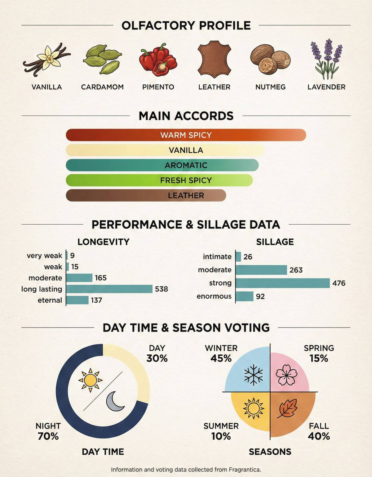 • The Opening: A vibrant burst of Cardamom, Nutmeg, and Elemi provides a spicy, energetic start that cuts through the night air.